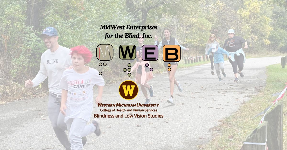 The American Council for the Blind lists Kalamazoo as one of the top five most blind friendly cities in the United States to live. MidWest Enterprises for the Blind, Inc. (MWEB) and Western Michigan University (WMU) are hosting a White Cane 5K on October 11, 2025 at Spring Valley Park in Kalamazoo, Michigan. MWEB and WMU hope to raise awareness in a fun and healthy way. Come walk or run and connect with the blind community!